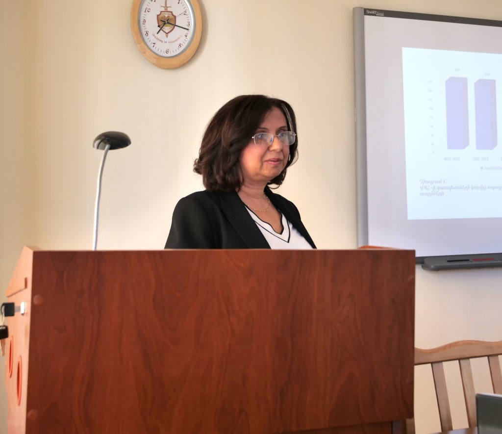 - համալսարանի գիտական աշխատանքների գծով պրոռեկտոր Վարդուհի Հովսեփյանը ներկայացրեց համալսարանի ամբիոնների՝ 2024-2025 ուսումնական տարվա գիտահետազոտական աշխատանքների արդյունավետության վերլուծությունը, որն ընդունվեց ի գիտություն գիտական խորհրդի անդամների կողմից,