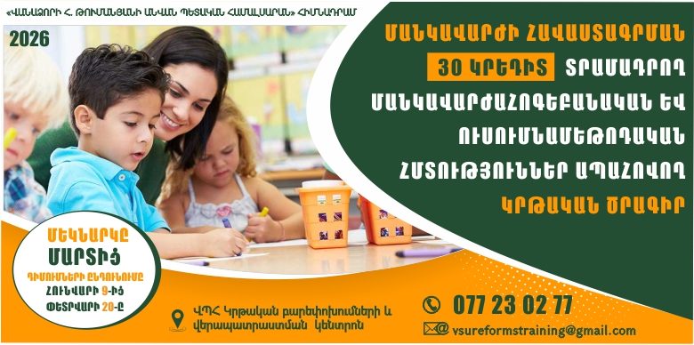ՄԱՆԿԱՎԱՐԺԻ ՀԱՎԱՍՏԱԳՐՄԱՆ 30 ԿՐԵԴԻՏ ՏՐԱՄԱԴՐՈՂ ՄԱՆԿԱՎԱՐԺԱՀՈԳԵԲԱՆԱԿԱՆ ԵՎ ՈՒՍՈՒՄՆԱՄԵԹՈԴԱԿԱՆ ՀՄՏՈՒԹՅՈՒՆՆԵՐ ԱՊԱՀՈՎՈՂ ԿՐԹԱԿԱՆ ԾՐԱԳԻՐ