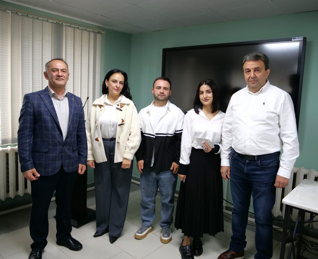 Հանդիպումը շարունակվեց համալսարանի Smart Caffe-ում, որտեղ հյուրերը իրականացրին այցի հաջորդ նպատակը: Արմեն Մատինյանը և Գառնիկ Մազմանյանը իրենց համակուրսեցի «Արսեն Հարությունյանի» անվան ամենամյա կրթաթոշակներ տրամադրեցին «Պատմություն» և «Իրավագիտություն» բաժինների լավագույն 4 ուսանողներին, ինչպես նաև նվերներ հանձնեցին պատմության ամբիոնին։