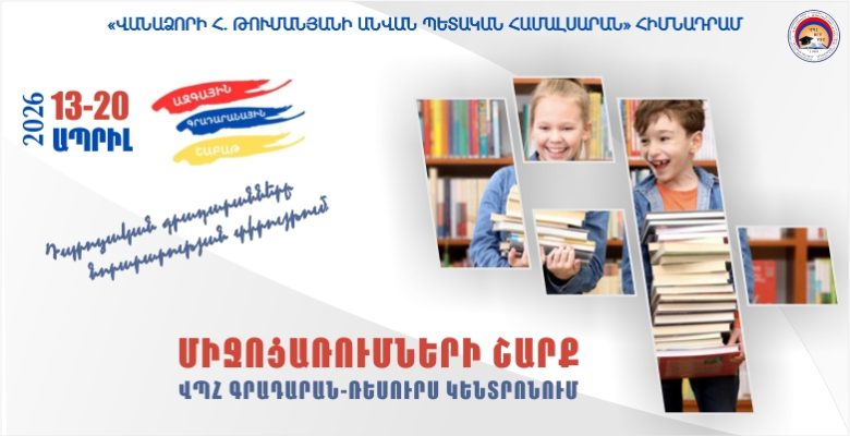 Սիրով տեղեկացնում ենք, որ սույն թվականի ապրիլի 13-20-ը մեկնարկում է Ազգային գրադարանային շաբաթը, որն այս տարի անցկացվում է «Դպրոցական գրադարանները նորարարության տիրույթում» խորագրի ներքո։ ՎՊՀ գրադարան-ռեսուրս կենտրոնը նախատեսել է բազմաբովանդակ միջոցառումների շարք՝ ուղղված կրթության նորարարություններին, ընթերցանության խթանմանը և գրական հանդիպումներին։
