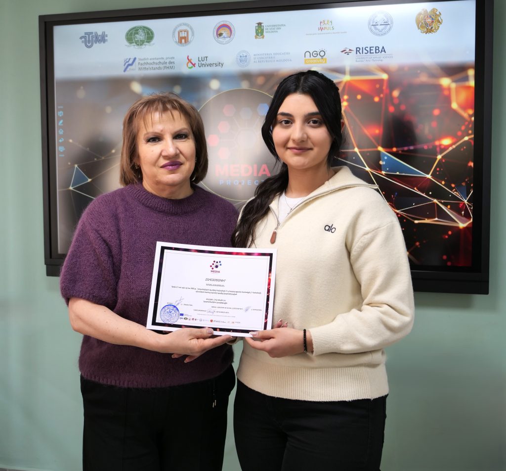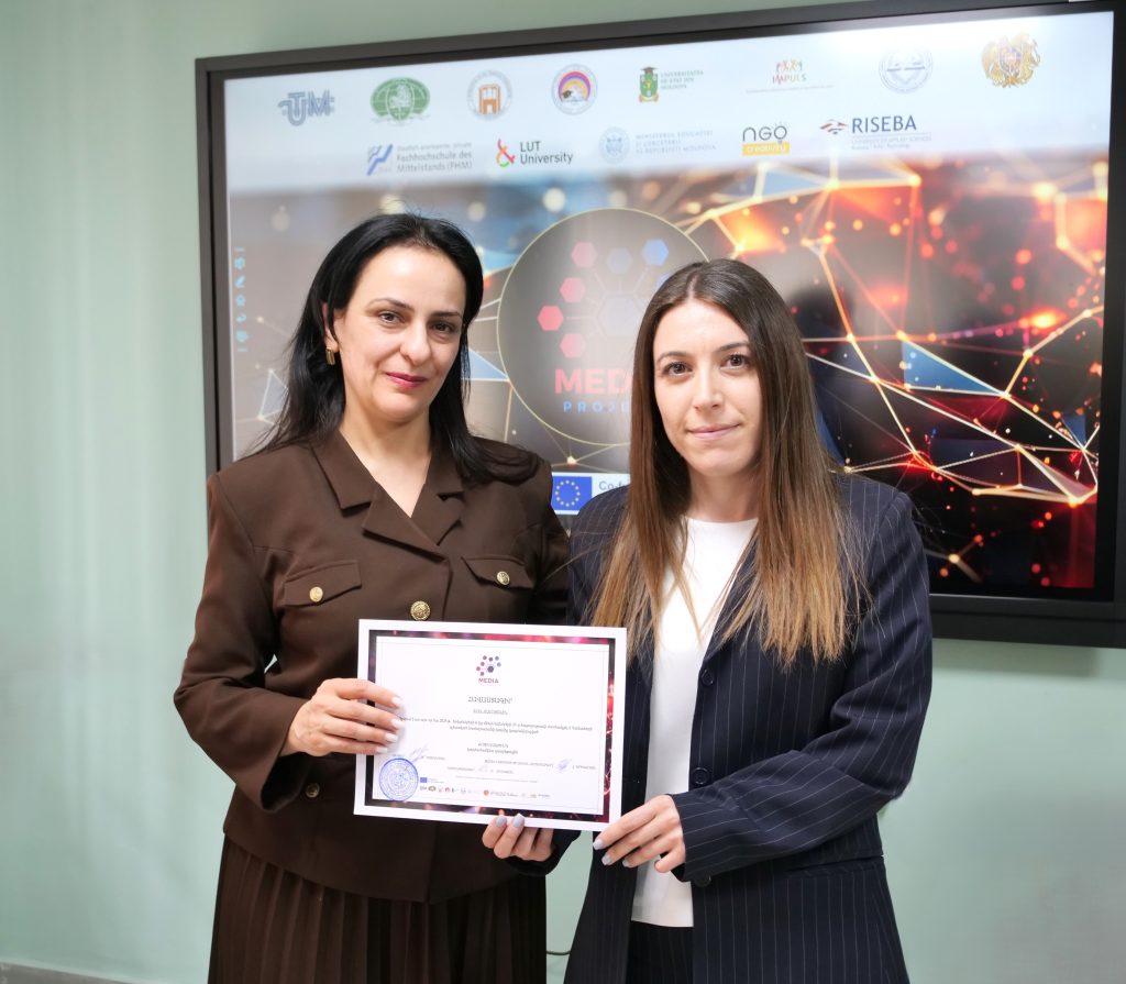 Մարտի 6-ին Վանաձորի պետական համալսարանում տեղի ունեցավ  Էրազմուս+ «Առցանց կրթության որակի բարելավում Մոլդովայի և Հայաստանի բուհերում» (MEDIA) դրամաշնորհային ծրագրի շրջանակներում կազմակերպված կարճատև դասընթացների երրորդ փուլի ամփոփիչ միջոցառումը։ Դասընթացները հաջողությամբ ավարտած մասնակիցներին շնորհվեցին հավաստագրեր։
