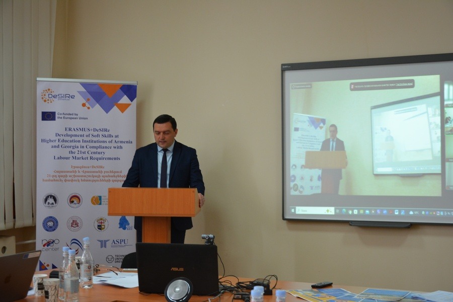 Ողջունելով մասնակիցներին՝ դոկտոր Տիգրան Վանդունցը նշեց, որ վերջին տարիներին համալսարանն ակտիվորեն ներգրավված է միջազգային համագործակցության ծրագրերում, հատկապես Էրազմուս+ նախաձեռնություններում, որոնք միտված են բարձրագույն կրթության որակի բարձրացմանը և այն աշխատաշուկայի պահանջներին առավել համապատասխանեցնելուն։ Նա ընդգծեց DeSIRe ծրագրի առանձնահատուկ կարևորությունը այս համատեքստում և շեշտեց փափուկ հմտությունների աճող դերը՝ հաղորդակցման, թիմային աշխատանքի, քննադատական մտածողության, խնդիրների լուծման և առաջնորդության հմտությունների զարգացումը մրցունակ շրջանավարտների պատրաստման գործում։ Իր խոսքը եզրափակելով՝ նա շնորհակալություն հայտնեց նախագծի գործընկերներին և մասնակիցներին՝ կարևորելով շարունակական համագործակցությունը փափուկ հմտությունների զարգացման և կրթության որակի բարելավման համար։