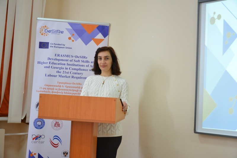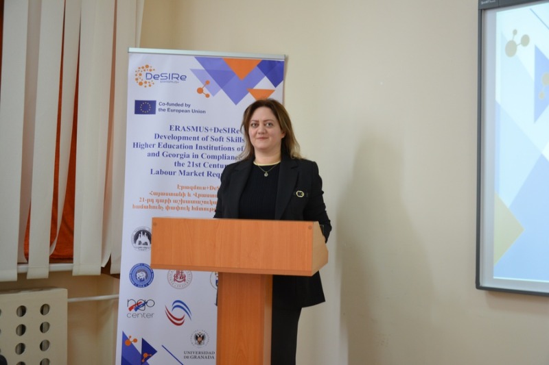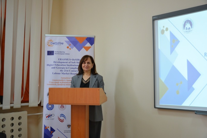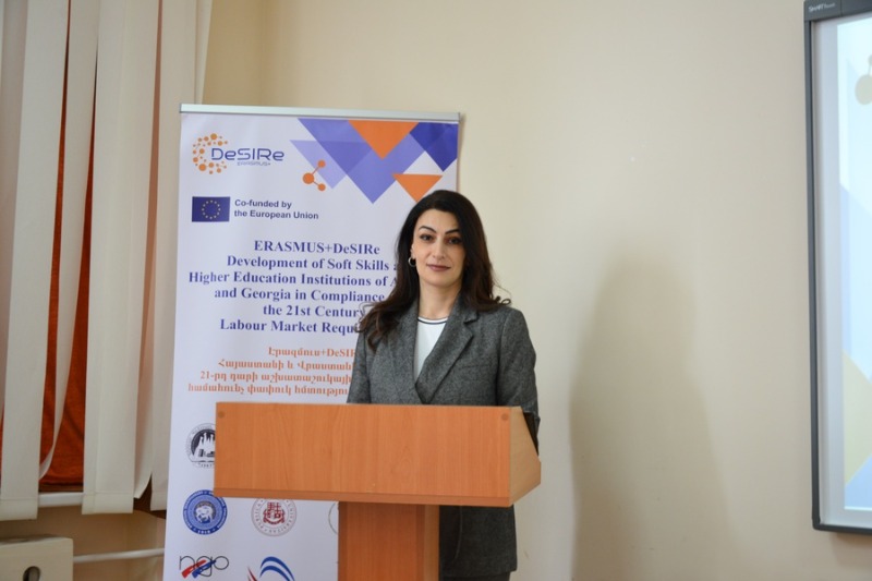 Դոկտոր Մարիանա Սարգսյանը ողջունեց մասնակիցներին և ընդգծեց Էրազմուս+ ծրագրի, մասնավորապես DeSIRe նախագծի կարևորությունը բարձրագույն կրթական համակարգերի արդիականացման գործում։ Նա նշեց, որ նախագիծը էական ներդրում ունի ինստիտուցիոնալ կարողությունների ամրապնդման, դասախոսների և ուսանողների ներուժի զարգացման, ինչպես նաև կրթության և աշխատաշուկայի միջև կապերի ուժեղացման գործում՝ խթանելով 21-րդ դարի պահանջներին համապատասխան փափուկ հմտությունների զարգացումը։