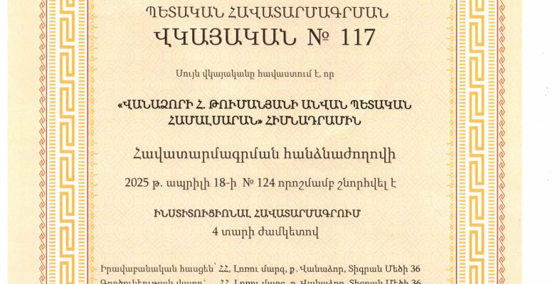 Վանաձորի պետական համալսարանին շնորհվեց ինստիտուցիոնալ հավատարմագրում 4 տարի ժամկետով