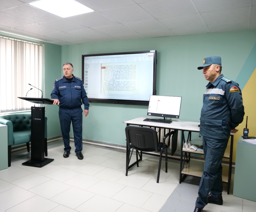 ՓԾ փոխգնդապետ Հ. Սահակյանը ներկայացրեց երկրաշարժերի և հեղեղումների ժամանակ նախապատրաստական աշխատանքները, ինչպես նաև աղետի ընթացքում և դրանից հետո քաղաքացիների վարքականոնները: Տարհանման պլանների հետ կապված փրկարարական ծառայության աշխատակիցների կողմից տրվեցին հրահանգներ և ուղղորդումներ՝ արտակարգ իրավիճակներում տարհանման գործընթացը ճիշտ կազմակերպելու վերաբերյալ: