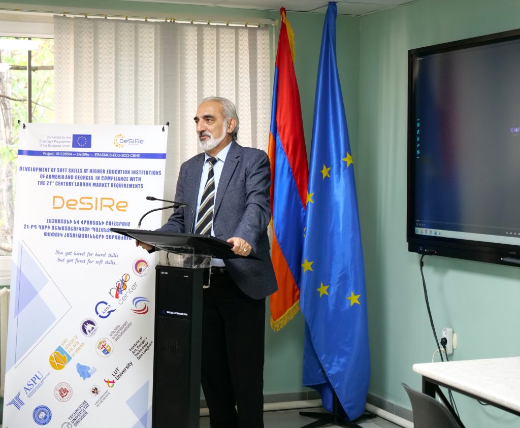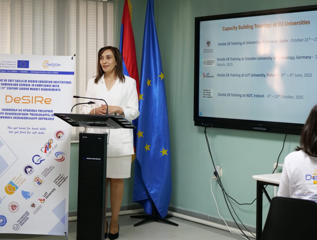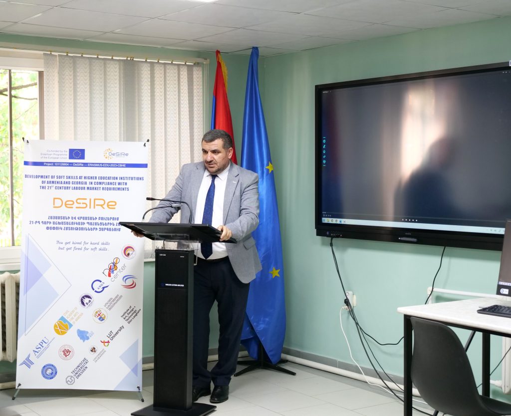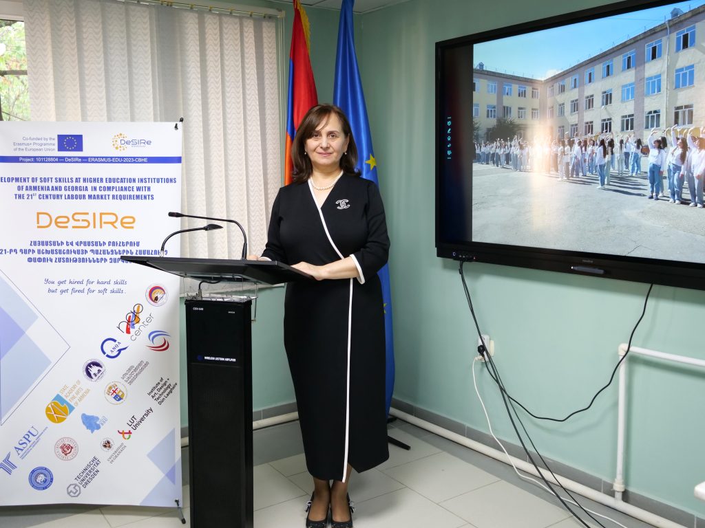 Ողջույնի խոսքերից հետո  DeSIRe նախագծի համակարգող Լուսիկ Վարդանյանը ներկայացրեց կարճ ելույթ՝ ամփոփելով նախագծի նպատակները, աշխատանքային փաթեթներն ու ակնկալվող արդյունքները։ Նրա խոսքում առանձնահատուկ շեշտ դրվեց փափուկ հմտությունների ամրապնդման, համապարփակ ուսուցման միջավայրերի ստեղծման և գործընկեր հաստատություններում նորարարական մոտեցումների խթանման վրա։