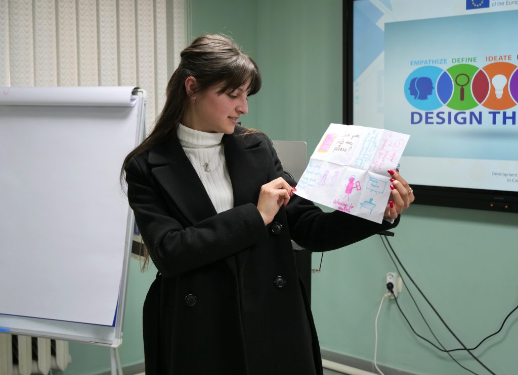 Մասնակիցները ներգրավված էին սառույցկոտրուկ քննարկումների, «Ստեղծագործ կապեր» քարտային խաղի, խմբային քննարկումների և թիմային առաջադրանքների մեջ, որոնք ուղղված էին դիվերգենտ մտածողության խթանմանը և գաղափարների ազատ արտահայտմանը։ Նրանք մասնակցեցին նաև դիզայն մտածողության գործնական վարժություններում, որոնց ընթացքում կիրառեցին «Կարեկցանքի քարտեզ», «Խենթ 8-եր» գաղափարների գեներացման տեխնիկան և արագ նախատիպավորման մեթոդը՝ վերաձևակերպելու որոշ ակադեմիական ու ինստիտուցիոնալ գործընթացներ։ Բացի այդ, իրականացվեցին իրավիճակային վերլուծություններ և դերախաղային վարժություններ, որոնք մոդելավորում էին համալսարանական և մասնագիտական իրական իրավիճակներ՝ ներառյալ հաղորդակցման խնդիրներ, որոշումների կայացման սցենարներ և թիմային աշխատանքի բարդություններ։ Այս վերապատրաստումների արդյունքում մասնակիցները զարգացրին իրենց ստեղծագործական կարողությունները ու համագործակցության հմտությունները, ինչպես նաև քննարկեցին և մշակեցին խնդիրների լուծման նորարական և ստեղծագործ մոտեցումներ և դրանց ինտեգրման հնարավորությունները ուսումնառության, դասավանդման, հաղորդակցության և կառավարման պրակտիկայում։