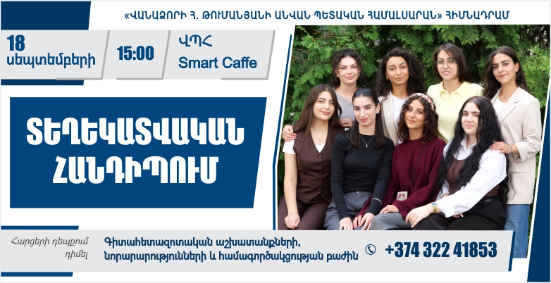 2025Թ. ՍԵՊՏԵՄԲԵՐԻ 25-ԻՆ` ԺԱՄԸ 11.00 – ԻՆ, ՀԱՄԱԼՍԱՐԱՆԻ ՓՈՔՐ ԴԱՀԼԻՃՈՒՄ ՏԵՂԻ ԿՈՒՆԵՆԱ ԳԻՏԽՈՐՀՐԴԻ ՆԻՍՏ