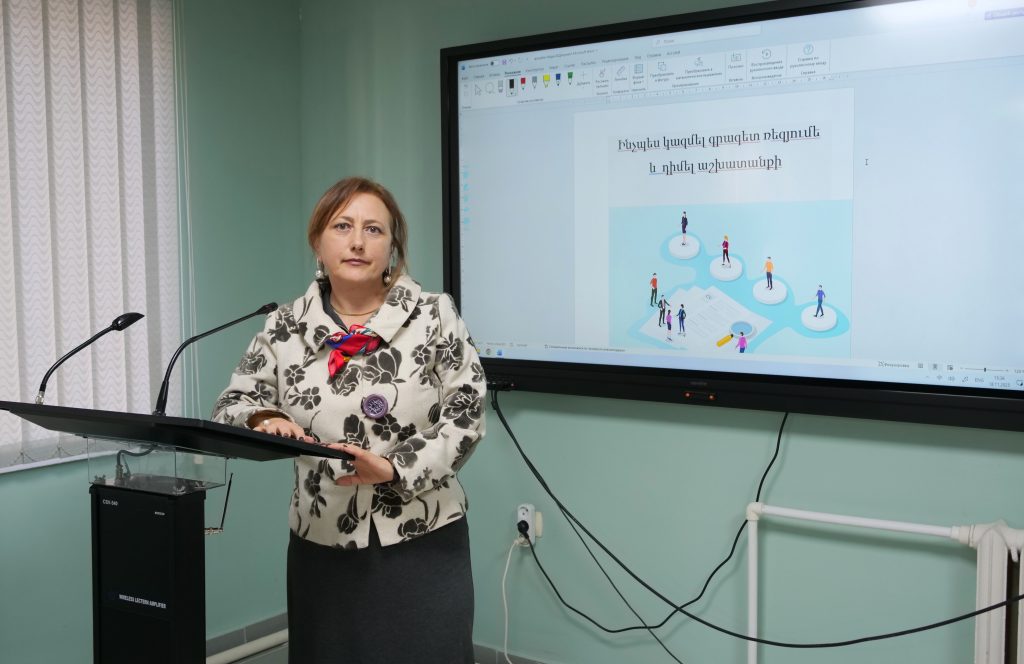 Սեմինարը վարեց մարդկային ռեսուրսների կառավարման բաժնի շրջանավարտների հետ աշխատանքների համակարգող Անուշ Սիմիկյանը։ Նա ուսանողներին ներկայացրեց ժամանակակից պահանջներին համապատասխան ռեզյումե կազմելու հիմնական սկզբունքները, արդյունավետ ինքնաներկայացման և աշխատանքային հարցազրույցին պատրաստվելու հմտությունները։