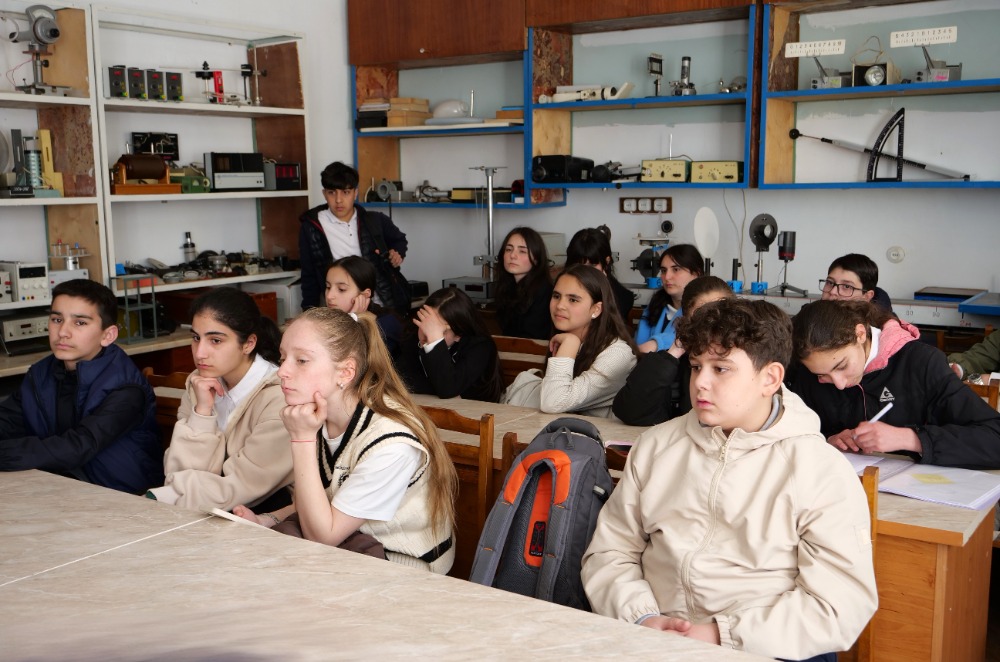 Այնուհետև քիմիայի և կենսաբանության ամբիոնի ասպիրանտ Հայկուհի Թաթուլյանը ֆիզիկայի լաբորատորիայում աշակերտների համար ցուցադրեց դիտարժան փորձեր «Մեխանիկա» և «Էլեկտրականություն» բաժիններից:Աշակերտները հետաքրքրությամբ հետևեցին ու մասնակեցեցին Էլեկտրաստատիկ մեքենայի լիցքավորման և պարպման գործընթացին, Տեսլայի կոճի միջոցով էլեկտրական հոսանքի ստեղծմանը, Կամերտոնի միջոցով ձայնային ալիքների տարածման փորձերին: